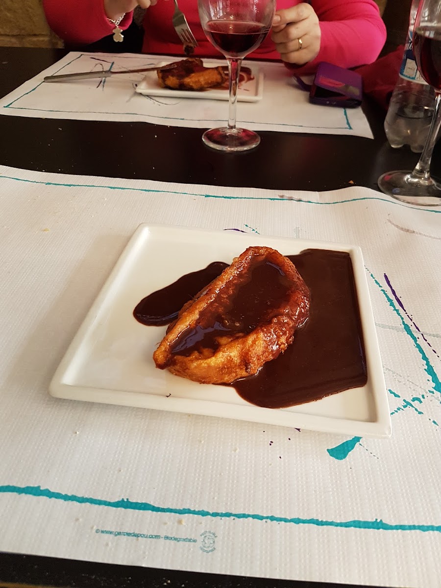 The menu at Tapería Santa Clara is a delightful journey through classic Spanish flavors. Among the highlights, the Pincho Pote stands out for its perfect balance of ingredients and generous portions, making it an ideal starter or accompaniment to drinks. Equally impressive is the Pincho de Bonito, a tender, flavorful bite that captures the essence of the sea, crafted with care and presented beautifully. For those with a sweet tooth, the Torrija Con Chocolate Liquido is a must-try; its soft, custardy texture paired with rich chocolate makes it a standout dessert on any review of the restaurant. And of course, no visit is complete without sampling the Patatas Bravas, crispy on the outside, fluffy on the inside, and coated with that signature spicy sauce that keeps diners coming back.